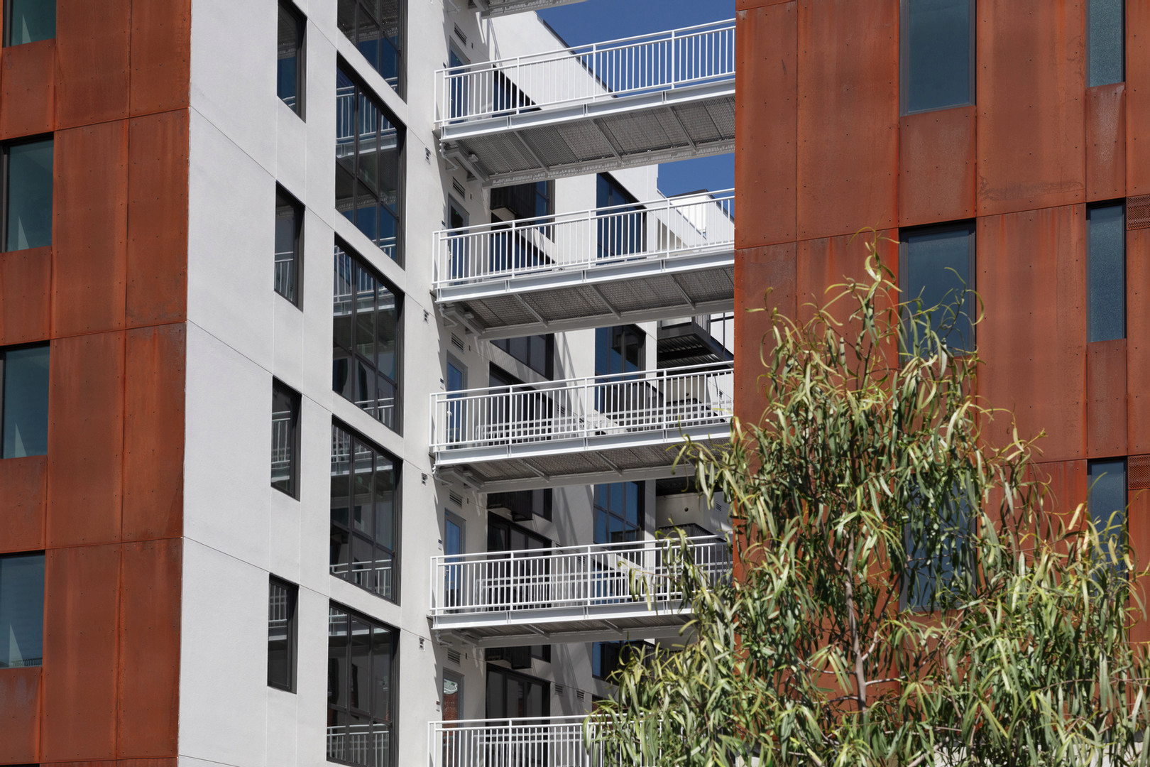 With its weathering steel facade and lushly landscaped garden laneways the project will complement a neighborhood of healthy contrast and diversity ranging from bars, clubs, and restaurants, to active light-industry, and whole-sale grocery.